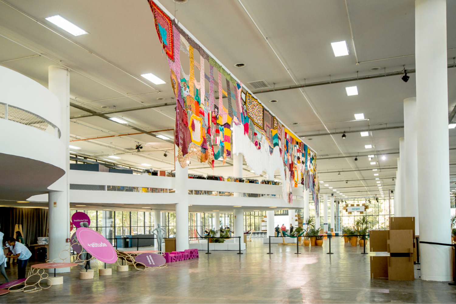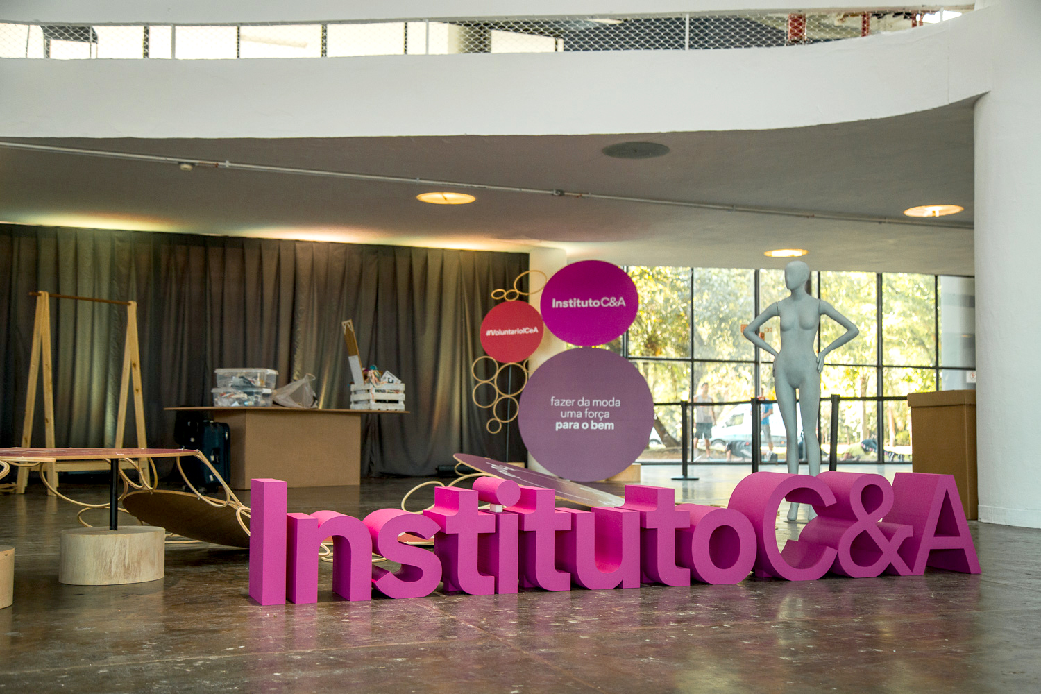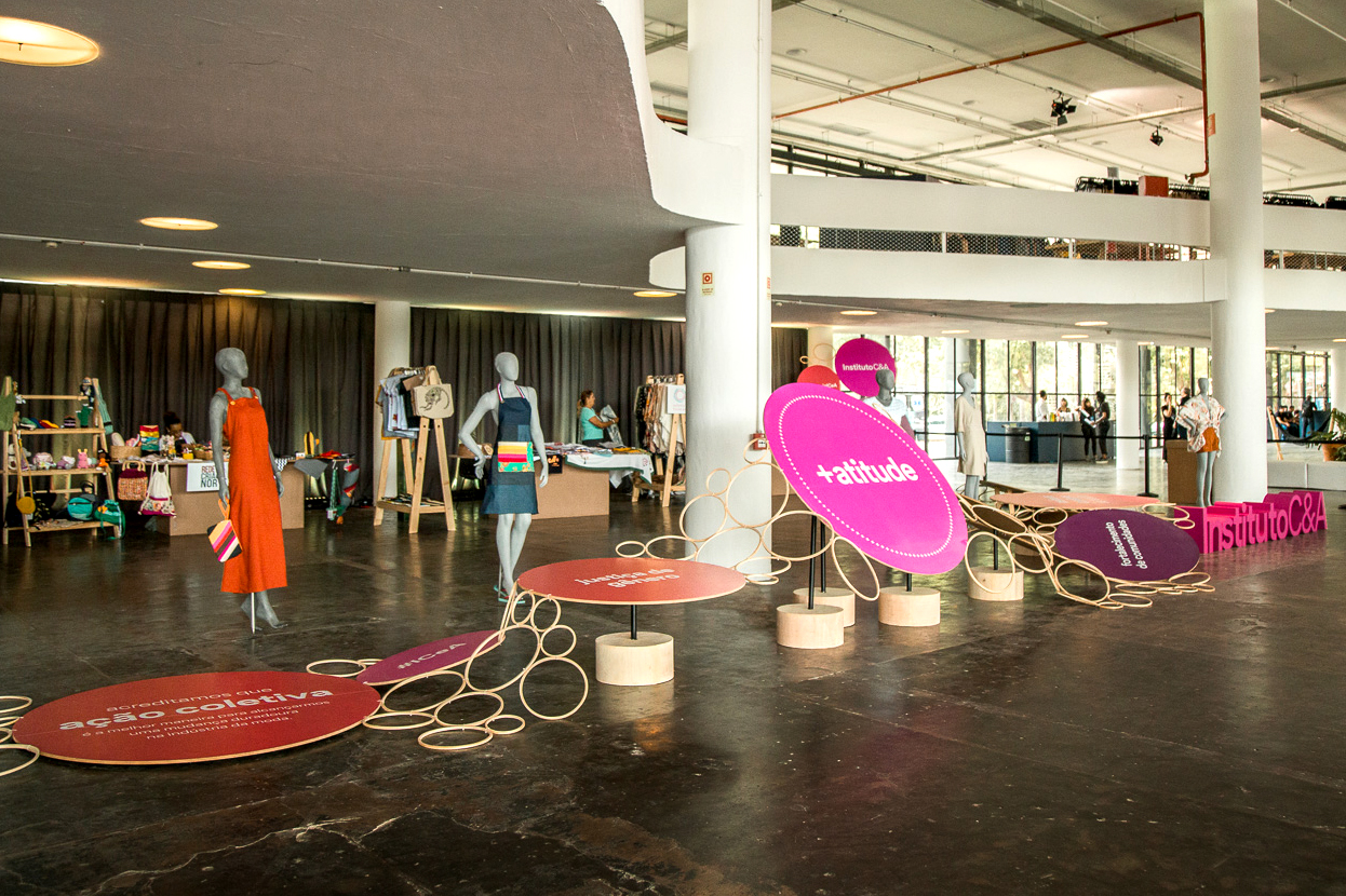 A cenografia do espaço do Instituto C&A foi pensada de forma que pudesse representar a força da cadeia da produção de moda, a importância de cada ponto da rede. Isso foi representado com bastidores de madeira conectados formando uma grande teia. Alguns dos bastidores continham mensagens e perguntas que geraram provocações e reflexões ao público. No mesmo espaco, 5 ONGs apoiadas pelo Instituto C&A expuseram seus produtos para venda.