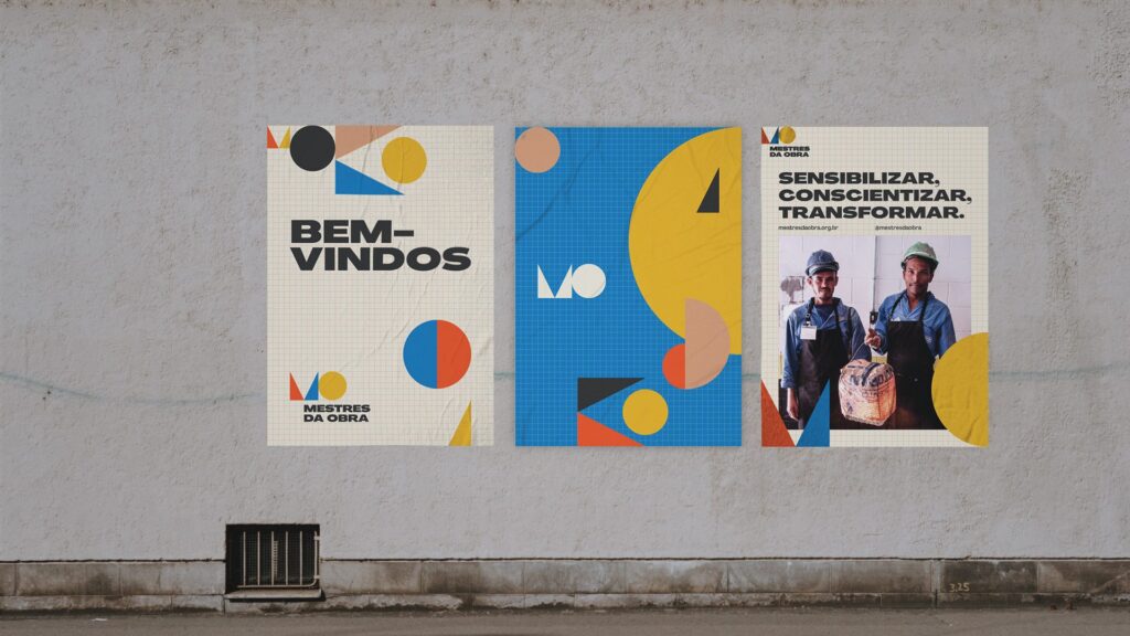 Criação de Identidade Visual para a OSCIP Mestres da Obra, fundada em 2001, com o intuito de promover a conscientização dos trabalhadores da construção civil.